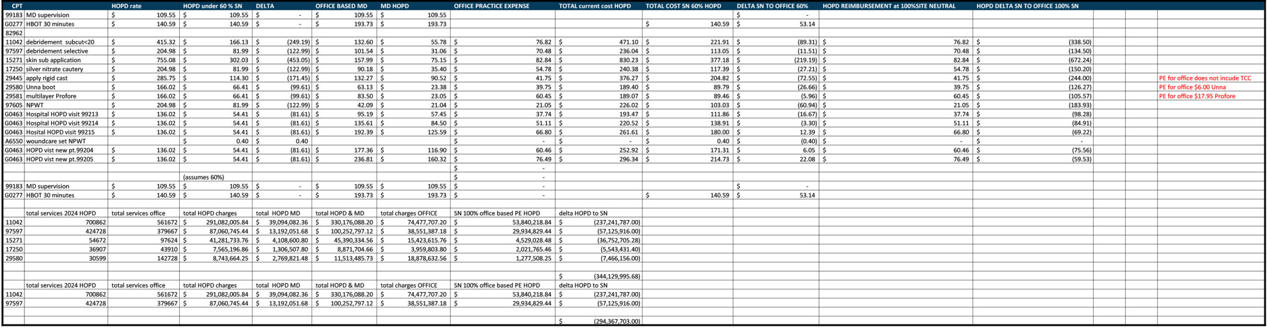 Looking at HOPD utilization numbers for 2024 and using the national average reimbursements for two commonly used codes, 11042 and 97597, site neutrality would have saved Medicare $294,367,703.00.